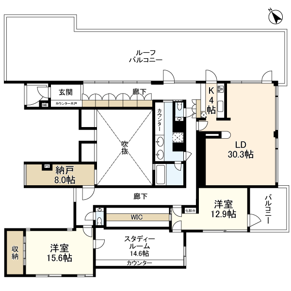 最上階、角部屋、ルーフバルコニー付、大型駐車場付