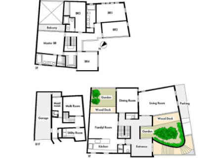フォート羽根木、テラスハウス7SLDK+メイドルーム(445㎡)ペット可のお部屋。B階【間取り/サービスルーム16.3帖】1階【間取り/LDK31.6帖/洋室32.7帖/洋室16.3帖】2階【間取り/洋室19帖/洋室15.7帖/洋室12.1帖/洋室12.1帖/洋室11帖】専用テラス付。デザイナーズならではの、採光の取れる間取りで全体的に明るい室内。充実した設備も必見。