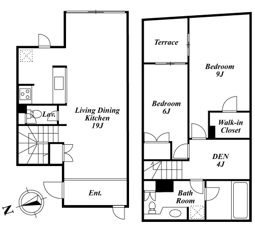 Duo Omotesando (デュオ表参道)1階/B1階2SLDK(92.19㎡)ペット可・SOHO可のお部屋。【間取り/LDK19帖/洋室9帖/洋室6帖/DEN4帖】使いやすい振分けタイプのメゾネットタイプ。デザイン性の高い内装。トイレが2ヵ所設置されていますので便利です。お洒落なカウンターキッチン搭載。収納豊富なウォークインクローゼット完備。使い勝手の良いサービスルーム完備。快適に暮らして頂けるための設備・仕様が整っていますので安心して心地よく生活して頂けます。